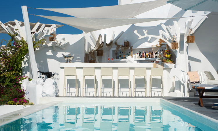 Perched on a privileged location in the centre of the sophisticated Oia, one of the most beautiful areas of Santorini, Sunday Suites is a complex of 8 luxurious suites inviting you to discover what comfort and luxury really is about. The stunning panoramic views of the Caldera, the volcano and the Aegean Sea, the personalized and unique decoration in each of the suites with handmade charming furniture, the independent fairy-tale courtyards of every suite, as well as the omnipresent artistic atmosphere will make you rank our hotel in your favourites.