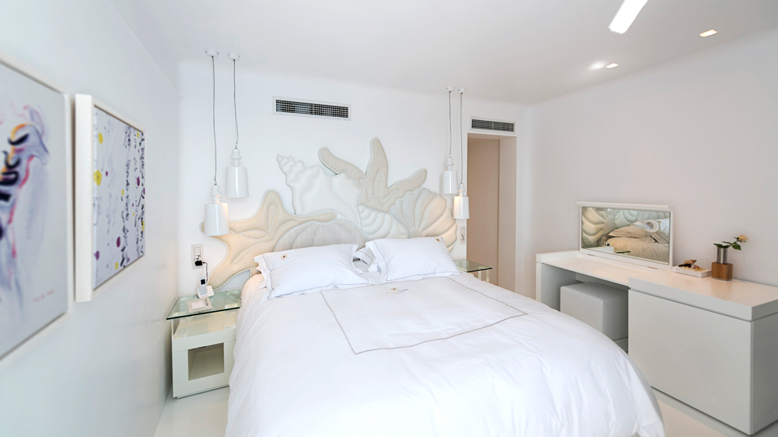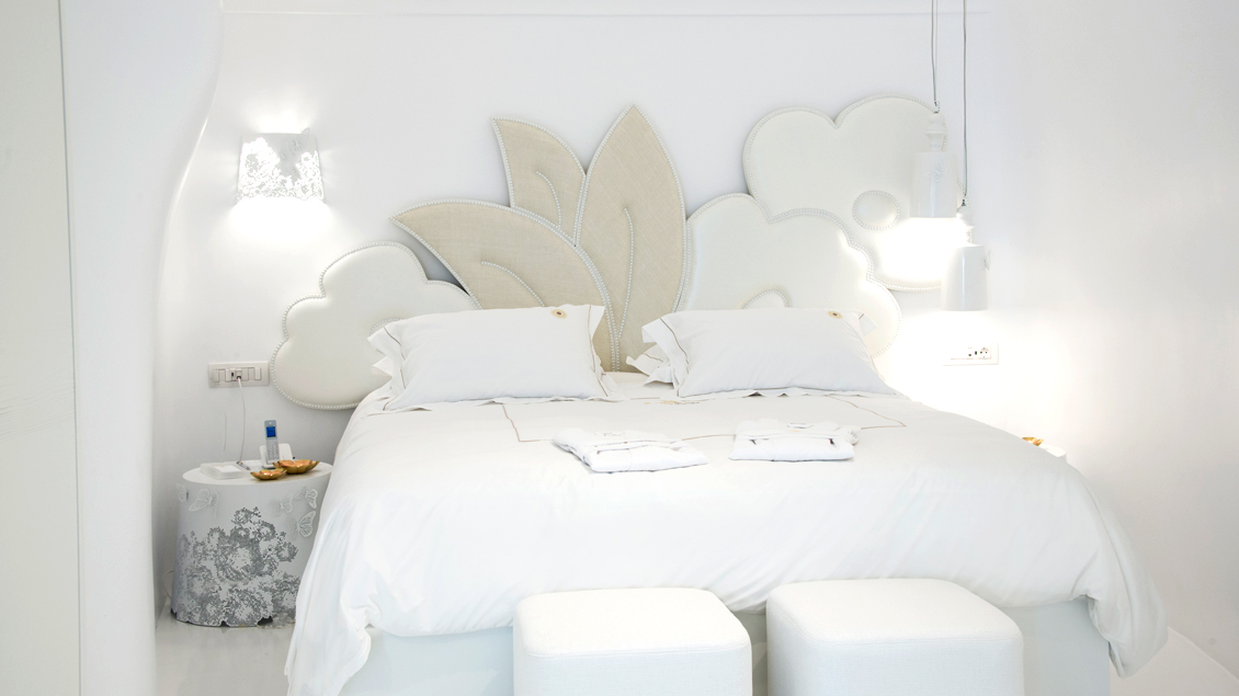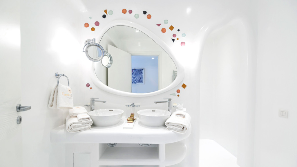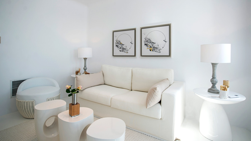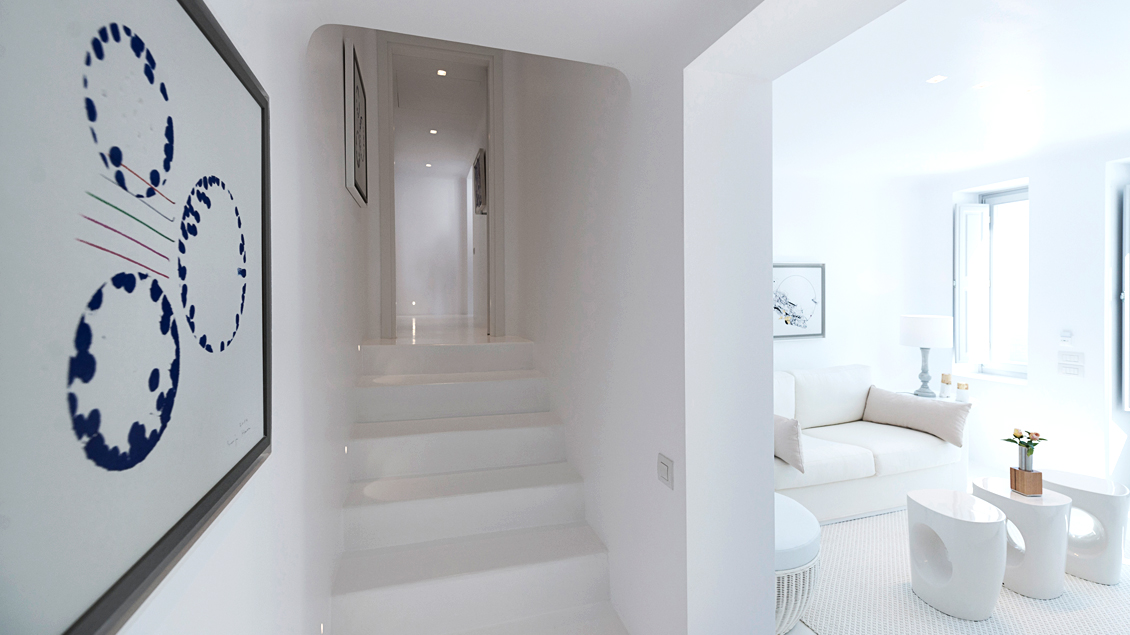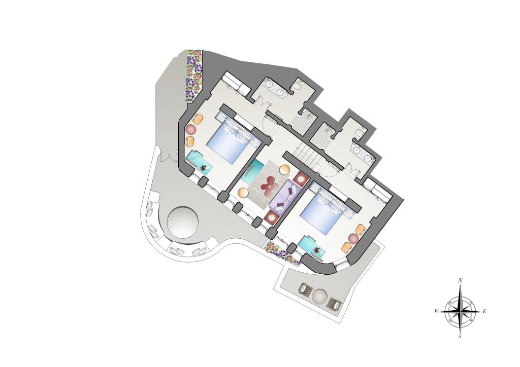 Δύο άνετα Υπνοδωμάτια με king size κρεββάτια, ξεχωριστό καθιστικό , 2 ιδιωτικά μπάνια με ντουζ και βεράντα με πανοραμική θέα της Καλντέρας (70 to 80 τ.μ.)