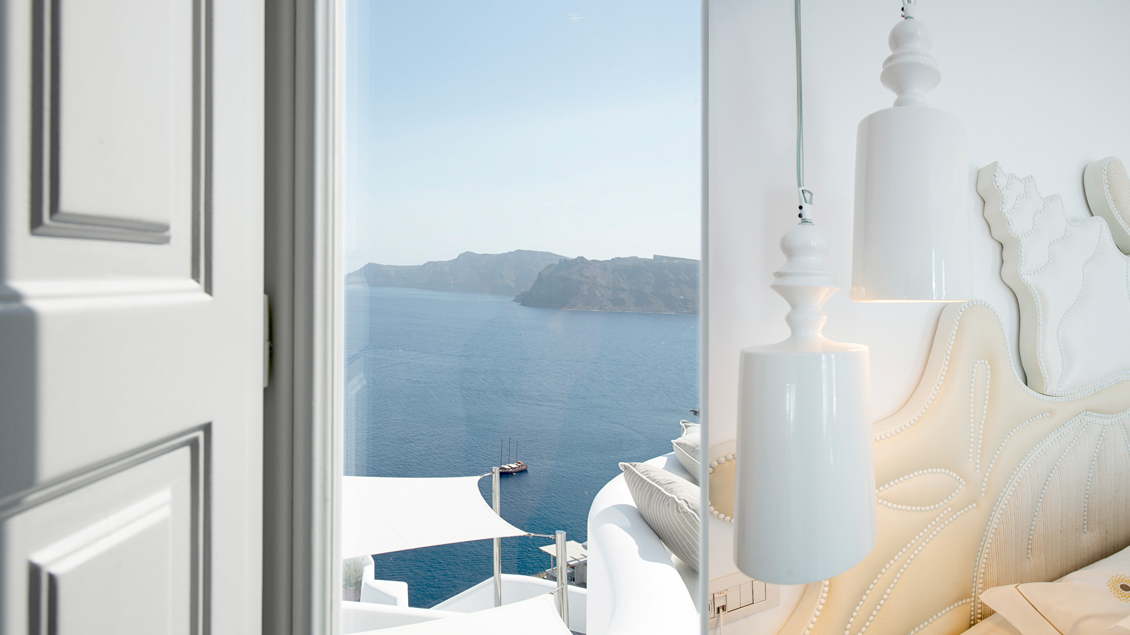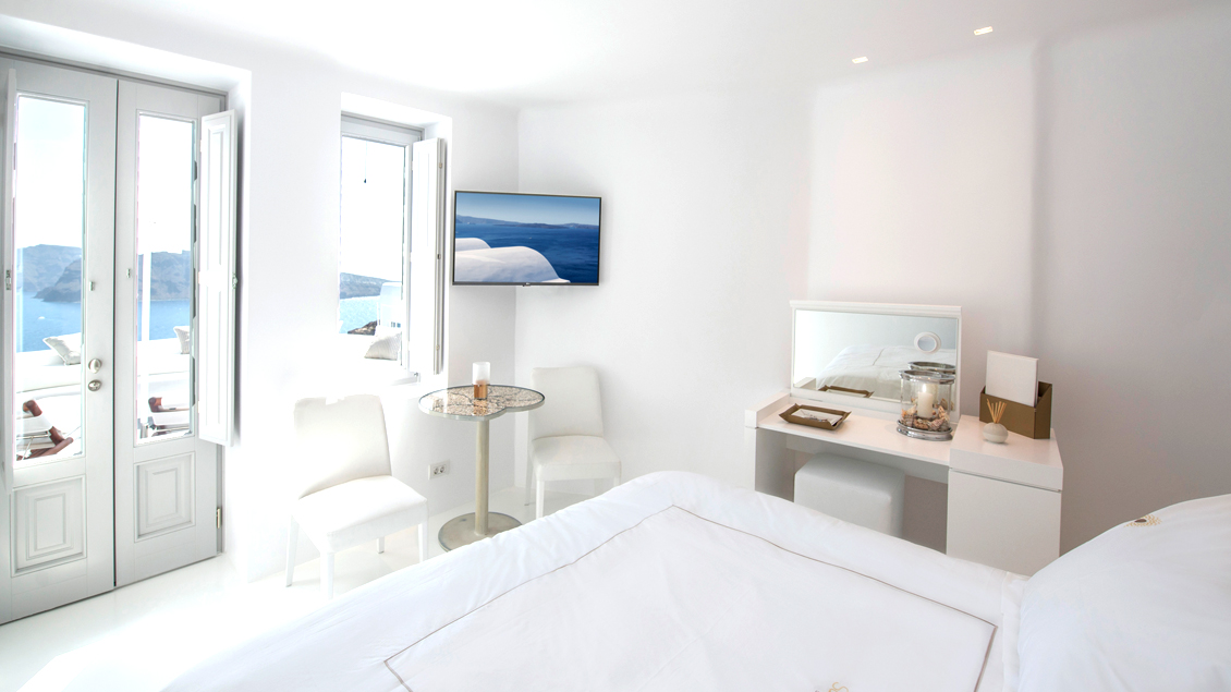 - Ιδιωτική βεράντα με ανεμπόδιστη πανοραμική θέα της Καλντέρας
