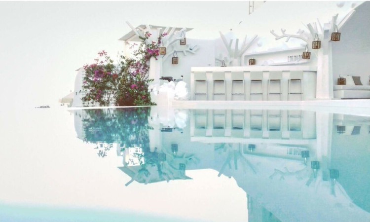 Рядом с бассейном расположен уютный бар, где вы можете насладиться вашими любимыми прохладительными напитками, коктейлями, легкими закусками и деликатесами, а также отдохнуть в атмосфере мягкой музыки, созерцая изысканные виды, в самом романтическом месте Кальдеры